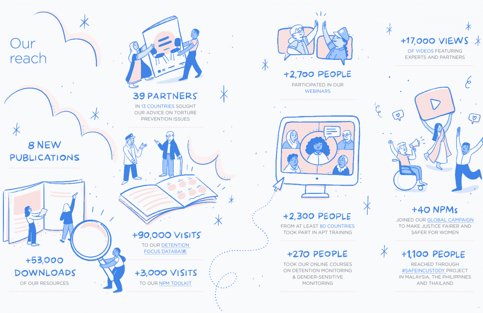 We developed new partnerships, deepened existing ones, invested in digitalisation, and began leading a new agenda for torture prevention with the launch of the Méndez Principles.