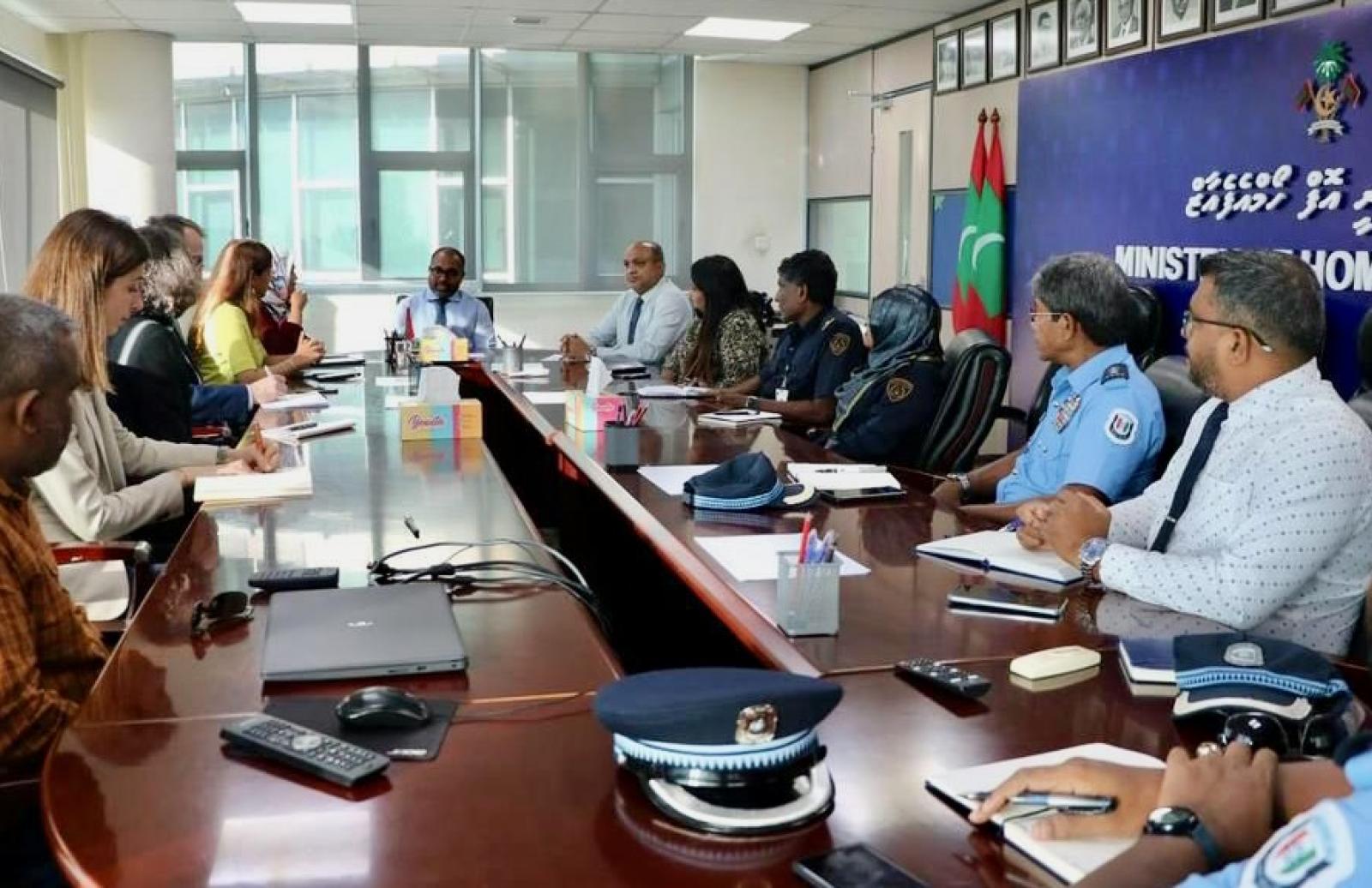 The discussions, held on 12 December, included more than 30 participants from the Ministry of Homeland Security and Technology, the Ministry of Defence, the Attorney General’s Office, the Prosecutor General’s Office, the Maldives Police Service, the President’s Office, the Anti-Corruption Commission, the Inspector for Correctional Service, Maldives Immigration, Maldives Customs, the judiciary and the Bar Council.