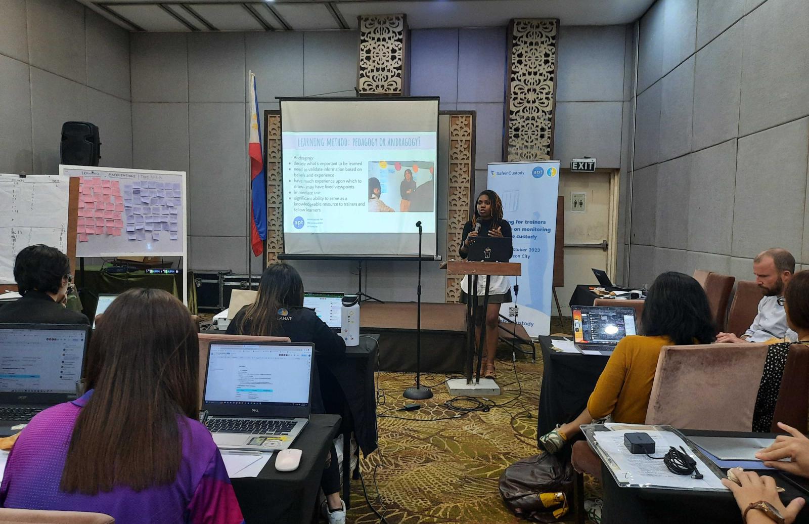 Building on the two online courses, the APT and CHR held a three-day ‘training of trainers’ programme on Police Custody Monitoring in Quezon City for 50 staff members from the CHR’s central and regional offices.