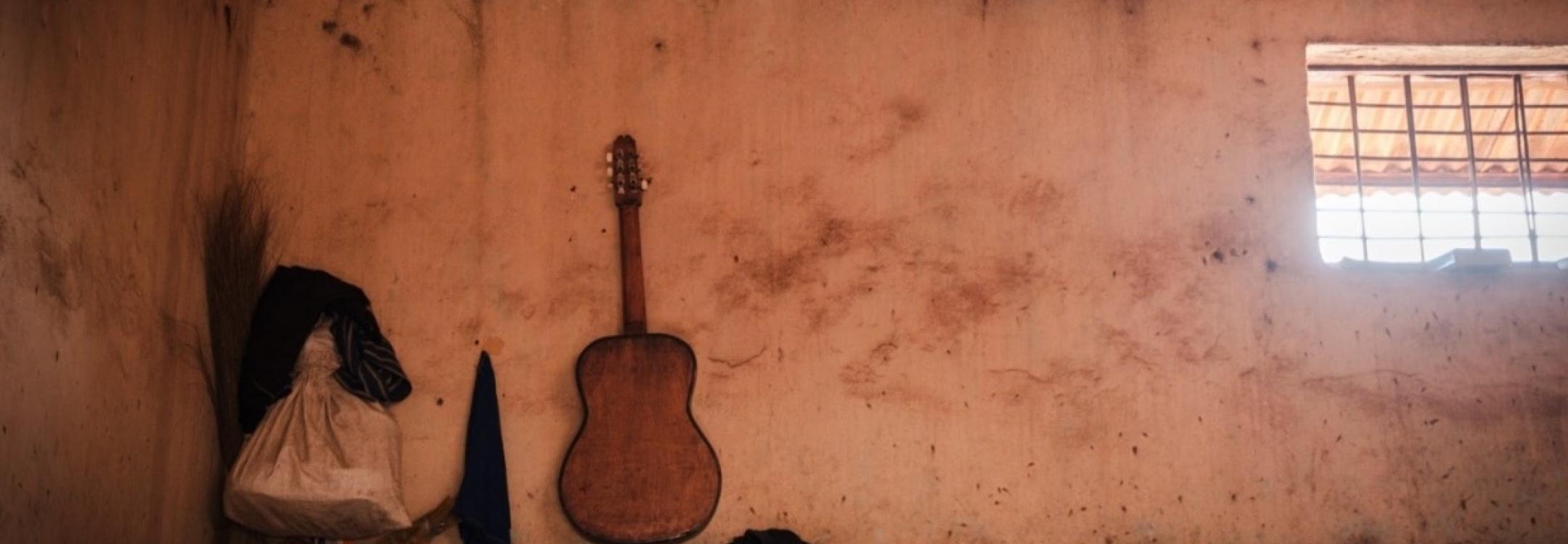 A guitar on the wall of a prison cell. Through visits to pre-trial detention, CSOs can also shed light on what is happening in police custody by asking recently arrived detainees about their experiences there.