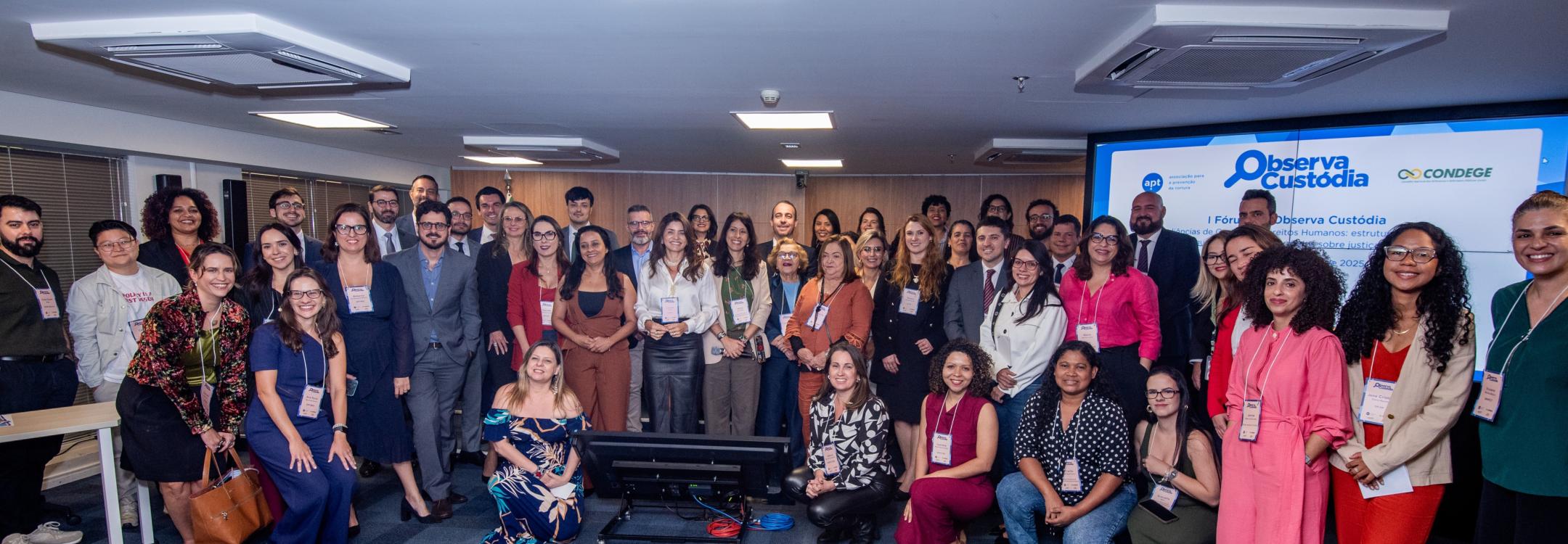 Defensores públicos, organizações da sociedade civil e mecanismos preventivos de todo o Brasil se reuniram em Brasília, DF, Brasil, para o Fórum Nacional da Observa Custódia, que teve como tema “Audiências de Custódia e Direitos Humanos: estruturas judiciais, salvaguardas individuais e dados sobre justiça criminal”.